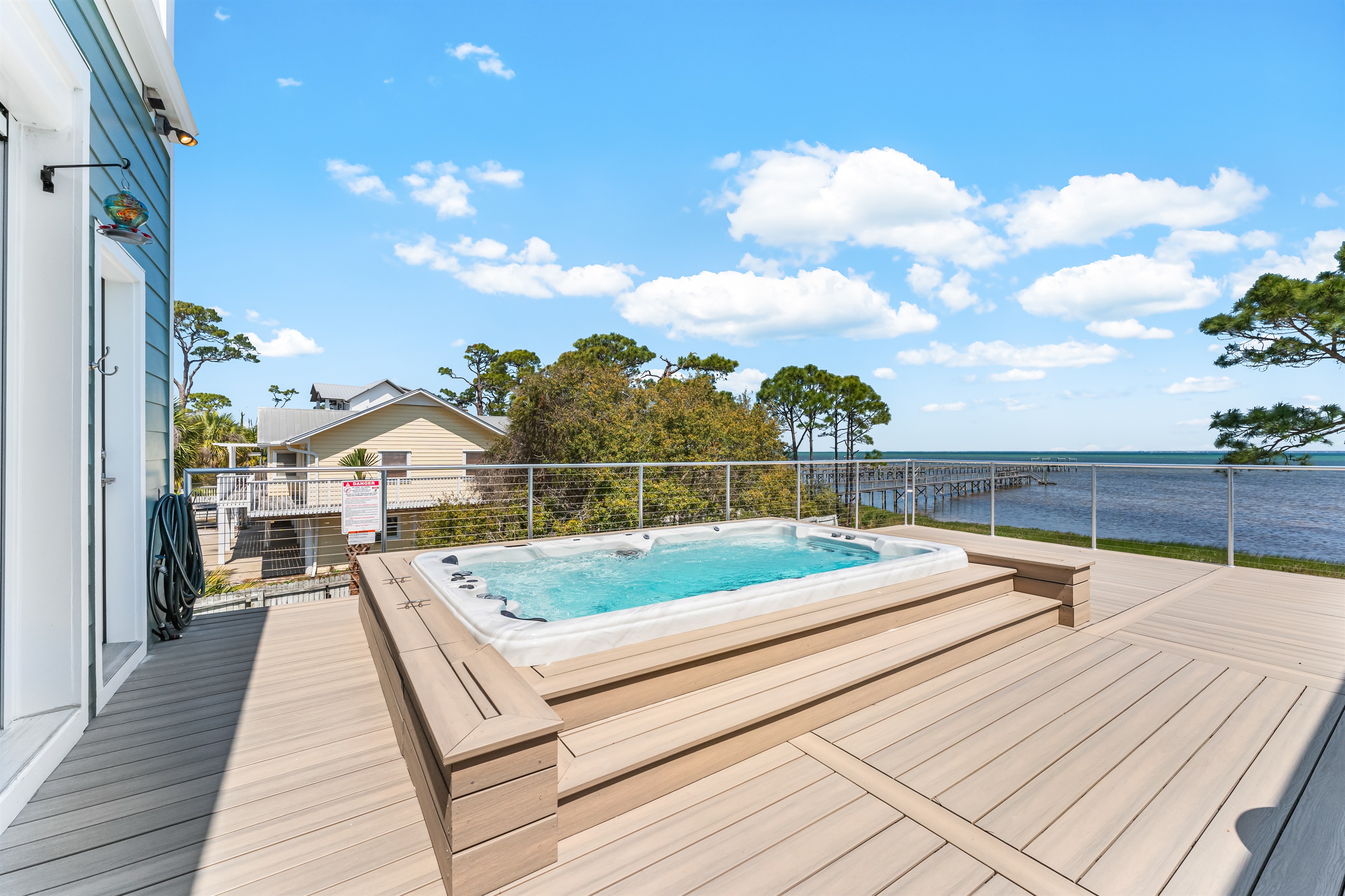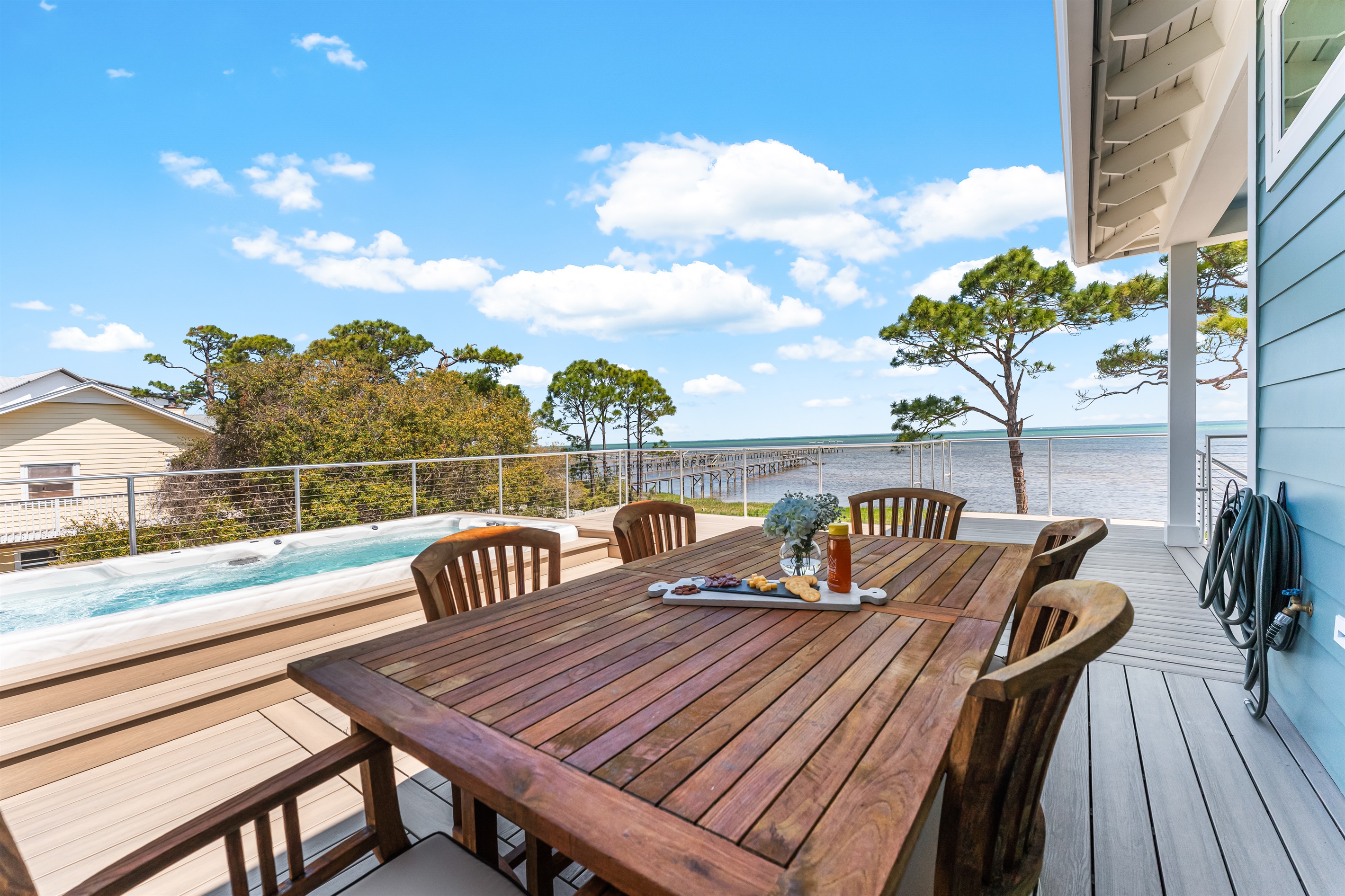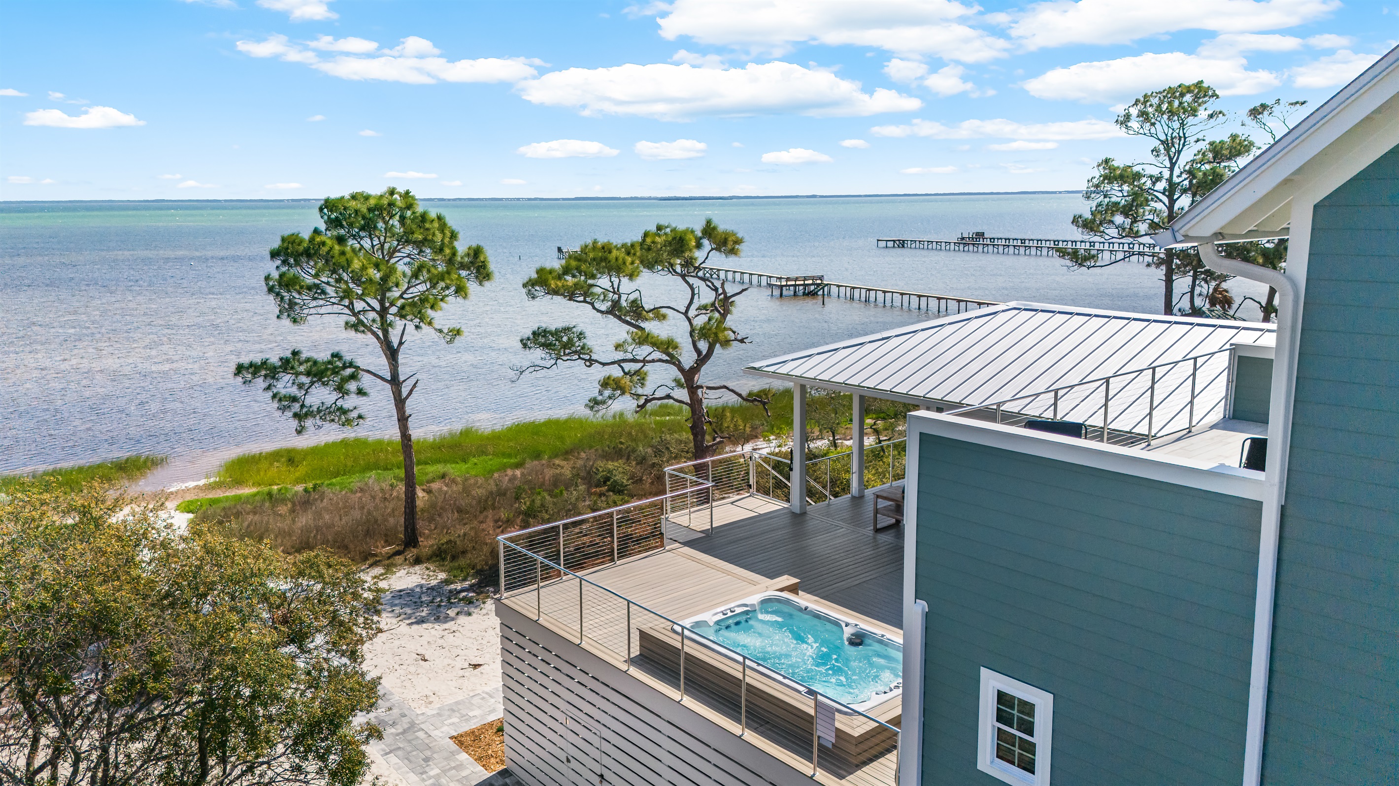 Discover King's Bay, a luxurious North Cape San Blas bayfront home nestled along the serene Forgotten Coast—only steps from the beach! With 2,930 square feet of pet-friendly living space, this 5-bedroom, 6.5-bathroom retreat comfortably sleeps 12. Enjoy stunning Bay and Gulf views, a private swim spa, and access to the community pool, dock, and beach. It's the perfect destination for coastal adventure!