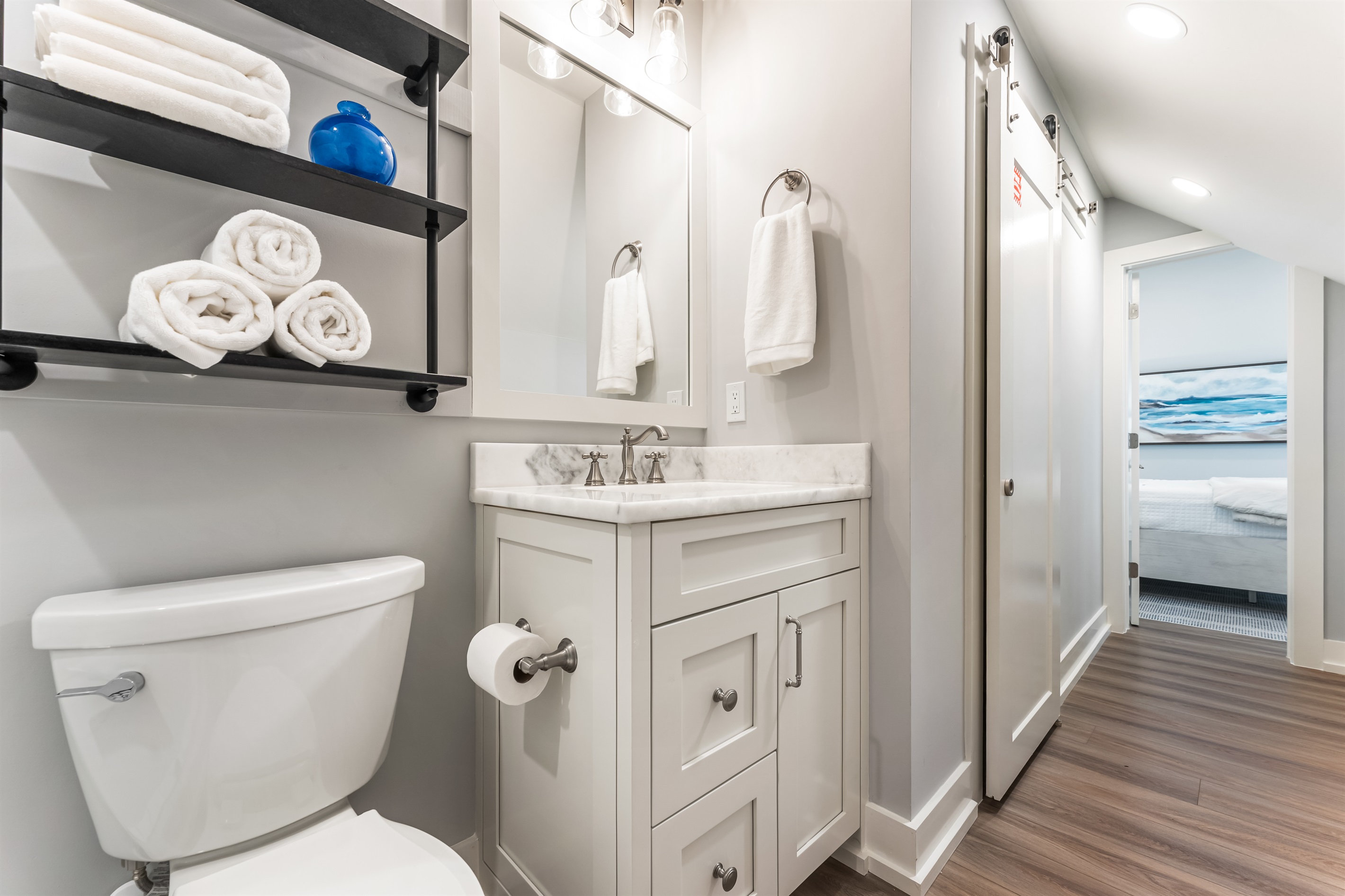 - Guest Bedroom: King Bed, Private Bathroom with Shower/Tub Combo